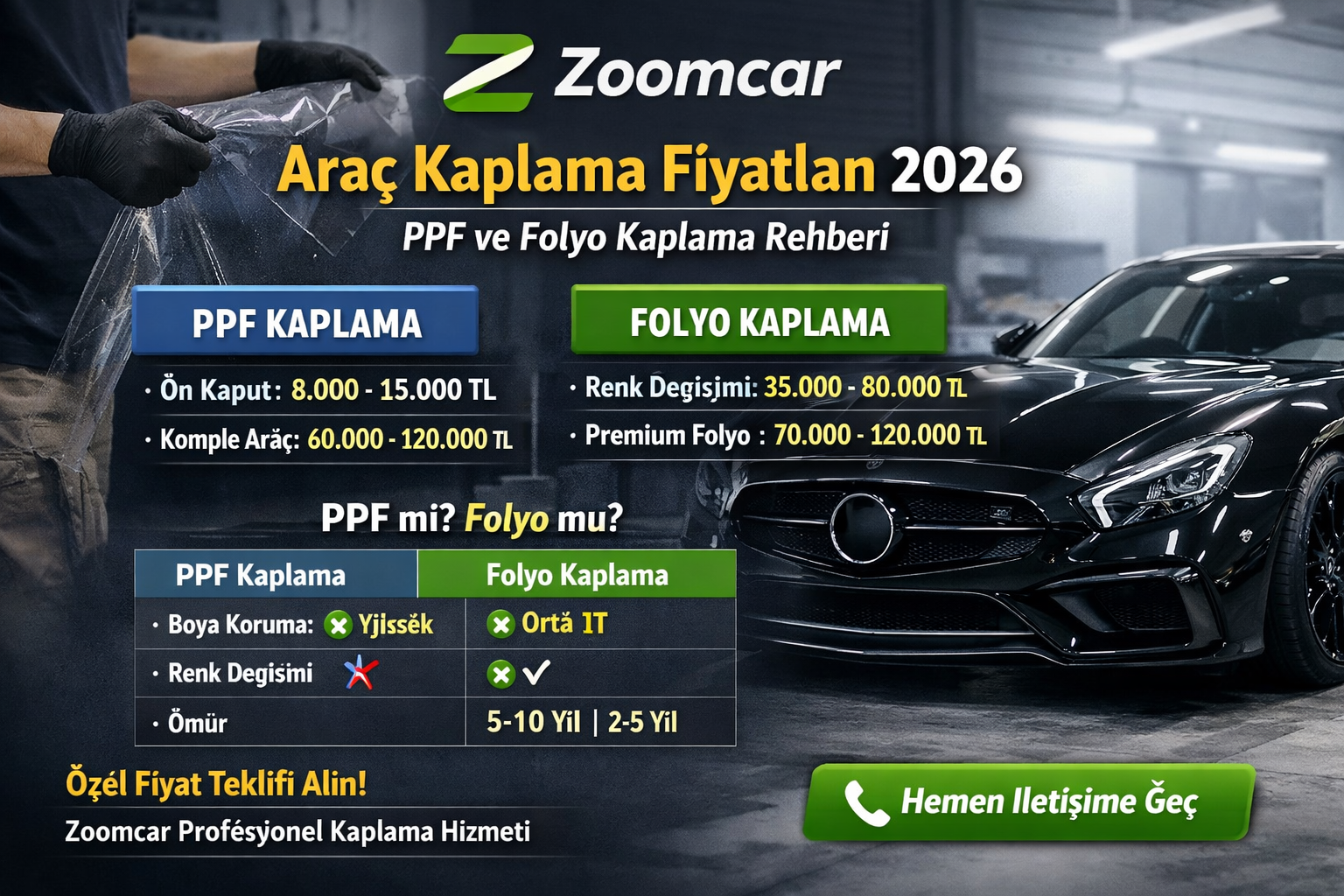🚗 Araç Kaplama Fiyatları 2026 | PPF ve Folyo Kaplama Rehberi